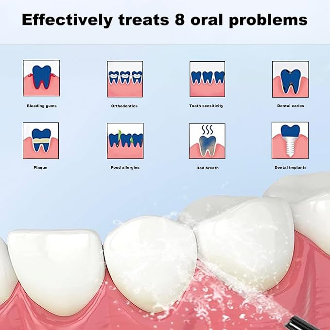 • Enjoy brighter, cleaner teeth and healthier gums in just 1 minute a day. This water dental flosser can effectively remove 99.99% of the deep food residues, massages the gums, and promotes blood circulation. The water teeth cleaner picks can also help prevent cavities, bad breath and tooth sensitivity, which can effectively keep your oral fresh, clean and healthy.