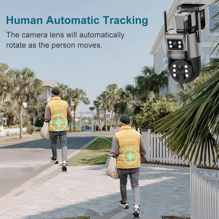 1. 4K dual lens dual-screen 4G/WiFi solar powered battery PTZ camera